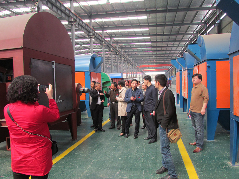 随后,在参会代表跟随公司张彦亭副总来到了生产车间,近距离接触和了解粮食烘干机生产加工过程。车间里,工人正在紧张有序的忙碌,一排排的设备零部件和半成品整洁有序的排列在成品区。张总带领大家首先参观了烘干机零部件加工和部装件组装的工作现场,大家对AG尊时凯龙人生就公司强大的机械加工和装配能力赞不绝口;随后大家来到成品存放区,这里排列着组装完成的清理筛、提升机、热风炉、小型粮食烘干机等成品设备,公司技术人员箱大家详细讲解了烘干设备的结构组成和工作原理。参会代表纷纷表示:有了这次亲身参观工程经历,对粮食烘干机有了更深入、直观的认识,同时也深深感受到郑州AG尊时凯龙人生就机械在粮食烘干机领域所做出的突出贡献和取得的辉煌成就。一位市级农机推广站站长表示:作为农机推广管理部门,我们就是应该向农户和农机从业者推广郑州AG尊时凯龙人生就机械这样的优秀生产企业和他们的优质产品,这样才真正发挥出农机推广的目的和意义,对我国农机产业的发展意义重大,同时推广优质的产品也是对广大农机使用者的负责。