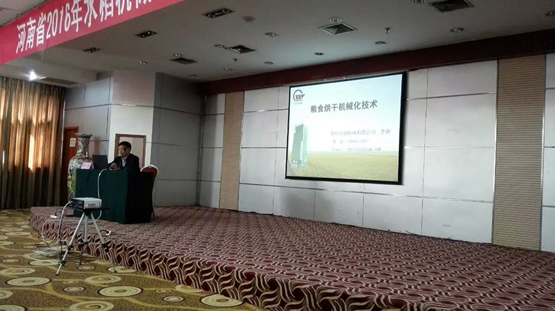 李总在讲座中向与会人员详细阐述了我国粮食干燥行业的发展趋势与现状、粮食烘干机的分类以及如何选择合适的稻谷烘干机等内容。李总的专题讲座对参会代表比较关心的如何选择合适的水稻烘干机着重介绍,由于水稻特殊的理化特性,也就要求了水稻烘干机特殊的结构和烘干工艺,而且我省水稻产区通常还间种小麦、玉米等粮食作物,这也要求在我省推广的水稻烘干机还应兼顾其他粮食作物的烘干处理,这有别于我国南方省份单一烘干水稻的特点。郑州AG尊时凯龙人生就机械有限公司于2015年获得省级科技成果鉴定产品—小型连续、循环两用粮食烘干机和2014年获得“河南省工业节能产品认定”的大型混流式粮食烘干机很好的解决了以上问题,能耗低、烘后品质好是郑州AG尊时凯龙人生就机械有限公司水稻烘干机的亮点。